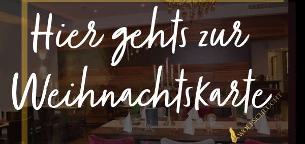 Weihnachten in der Wolfschlucht am 25. & 26.12.2020 I Petersilien Wurzelschaum Suppe oder Winterlicher Blattsalat mit Ziegenfrischkäsetalern II Medaillons vom Schweinefilet in kräftiger gebutterter Wildkräuter Creme Sauce serviert mit Rosmarin Kartoffeln und sautiertem Wurzelgemüse 42 oder …